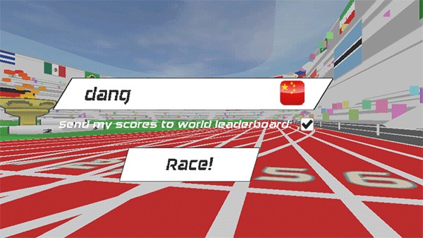 进入《速度之星汉化版》后,首先自定义你的运动员身份——选择代表国家的国旗并输入专属昵称,打造属于你的竞技形象。