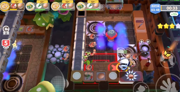 玩家如果不小心接触,马上就会喷出毒物,并且还会导致玩家完全不受控制,只会倒着走。从视频中就可以看到有一位玩家因为不小心中毒,原本准备走向灶台,可现在却变成了朝着反向狂奔。整个场面确实有一些啼笑皆非,在关卡进入到中期时,地图的中间也会有喷涂的致幻菇,并且覆盖的范围比较广泛,玩家稍微一个不小心就有可能会陷入到其中,给自己带来很多的麻烦,产生很多不必要的影响。