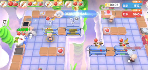 在云上挑战的双人排位中,出生地点还有分工都会影响到整个流程的效率。组队的规则就建议主动拉人者是队长,被拉者就是2号位。1号位的出生点是草莓、香蕉区域,2号位的出生点靠近山楂石材区域。利用出生点的差异,就可以有效完成食材的预处理。例如1号位置主要是控制上菜,2号位置主要是注重于投掷,通过左右分控的方法就能有效缩短食材的流传路径。