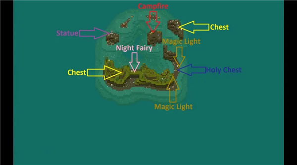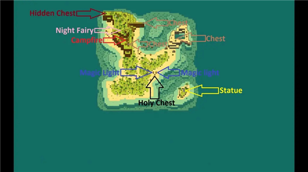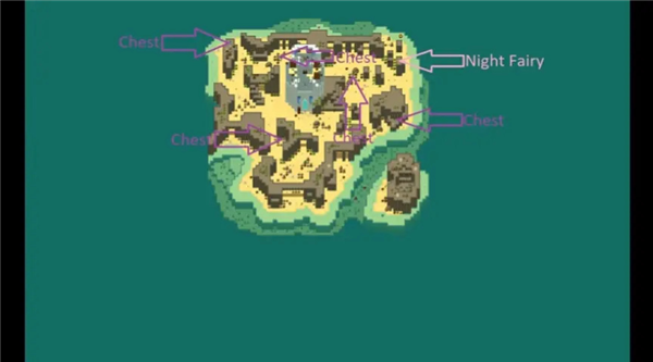 3、我们来到宝箱这里,发现被草丛围住了,这时候需要去制作一把工具来破坏草丛。