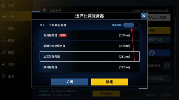 3、首次服务器是自动选择,需要关闭才能选择其它服务器;