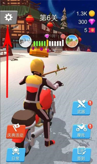 1、打开游戏,点击进入设置界面点击左上角的齿轮按键;