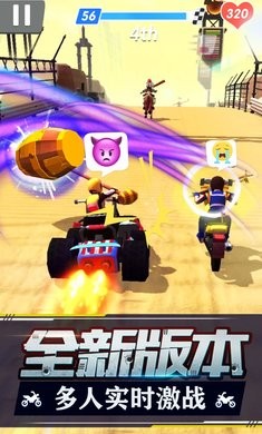 暴力飞车官方版是由Ohayoo制作的经典暴力摩托同名手游,在这款游戏中骑上暴力飞车来进行竞速比拼和挑战,超多的关卡和挑战模式都在等待玩家体验,游戏内容很多样,比赛极致的竞速比赛玩法,多人实时对战玩法模式下玩家可以用拳、脚去干扰对方,使其落后于你,在最终关卡来临之前淘汰所有的对手就可以顺利获得胜利。