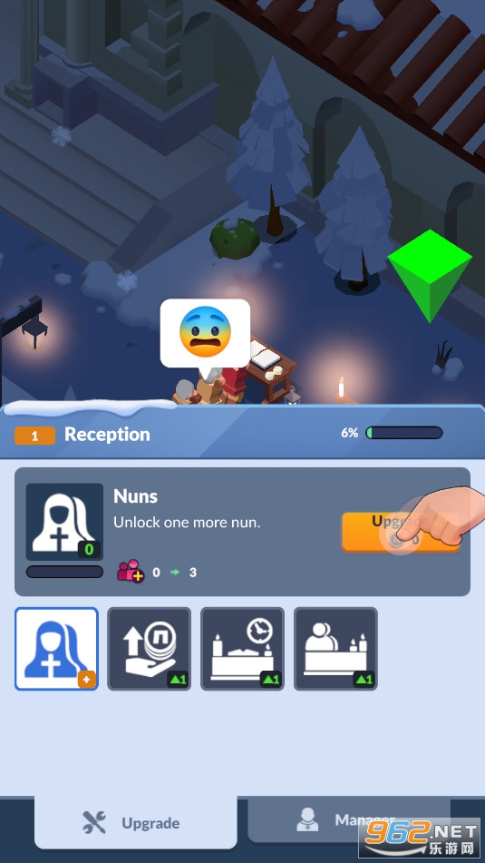进入游戏后,首先升级基础祈祷室与宿舍,提升修女数量与工作效率;随后开放接待区,引导访客捐赠资源;随着资金积累,逐步解锁花园、图书馆、工坊等高级设施,全面增强修道院的生产能力与影响力。整个过程直观流畅,配合清晰的引导提示,即使是首次接触放置类游戏的玩家也能迅速掌握要领。
