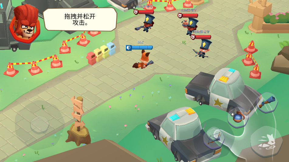 通过拖动屏幕左侧虚拟摇杆移动,右侧按键进行瞄准与攻击,操作直观流畅。