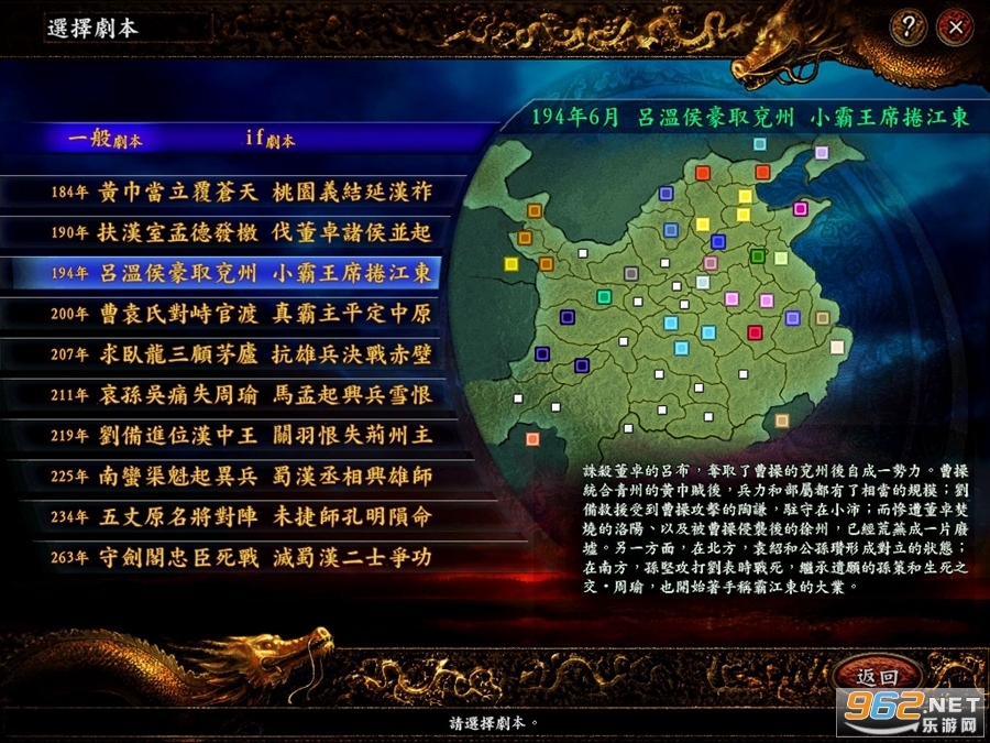行军路线固定于城市与据点之间,你可沿途修建碉堡等设施,既可阻敌推进,亦可作为己方部队休整补给之所。游戏提供20个剧本——10个严格遵循史实,另10个打破时空限制,让所有君主与武将同台竞技,创造属于你的幻想三国。