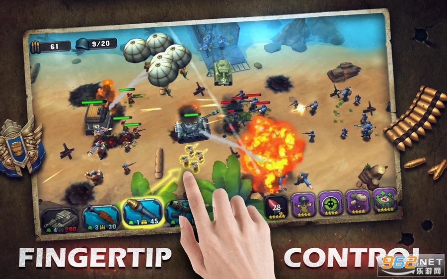 即时操控您的军队,根据战局随时调配不同的部队加入战斗,关键时刻释放将军技能炸掉敌人顽固的碉堡,没有什么比来一场沉浸式的战斗更紧张刺激了!