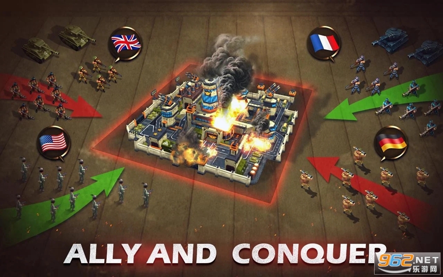招募中外各国二战名将,训练多种卡通有趣的军队。升级您的将军,合理搭配兵种,指挥他们去攻城掠地!