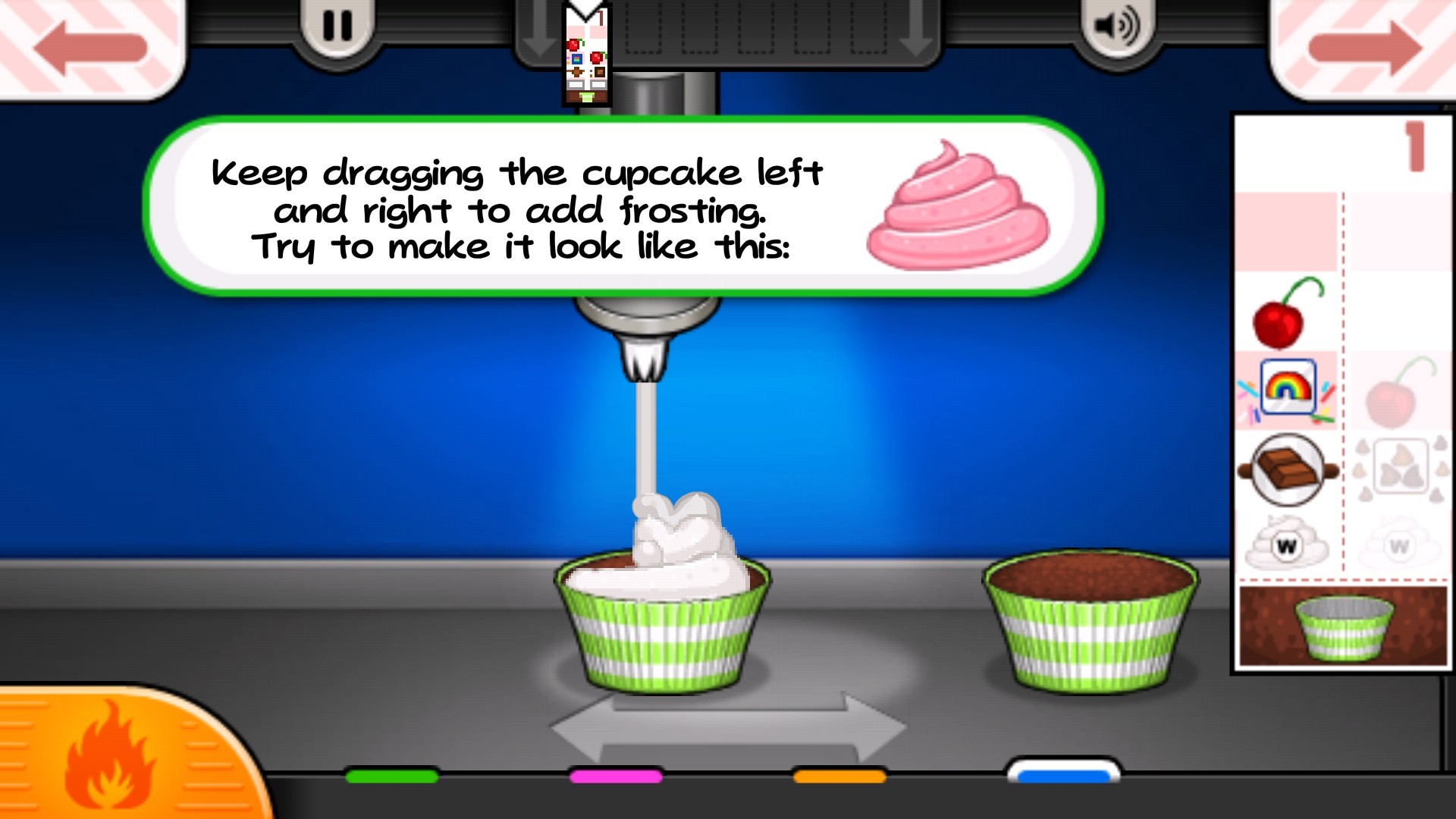 8、挤上指定颜色的奶油,尽量还原顾客要求的造型——还原度越高,评分与收益越可观。
