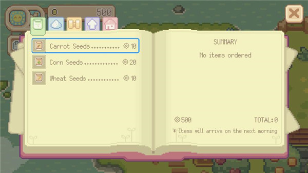 6、通过商店购买种子、工具等物资,逐步解锁钓鱼、装饰、季节限定活动等更多玩法内容。