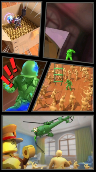 《兵人大战士气增加版》以童年玩具兵为灵感,构建出一个既怀旧又新颖的微观战争宇宙。画面色彩明快、细节精致,从卧室指挥中心到用存钱罐充当金库、小火车运输物资,日常物品被巧妙转化为军事设施,赋予游戏极强的代入感与趣味性。