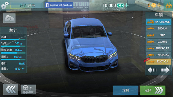 3、在开始游戏之前,你可以选择一下赛车,也可以进行改装,自己看着来就行;
