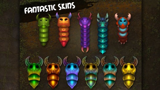 1、以卡通界面为主,蜈蚣设计的也非常可爱,打消玩家害怕蜈蚣的念头,在玩游戏的时候还有相应的背景音效,十分有趣;