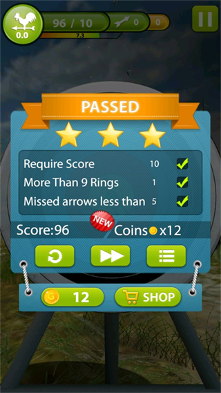 3、松开手指即可释放弓箭,命中目标后即时显示得分。