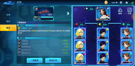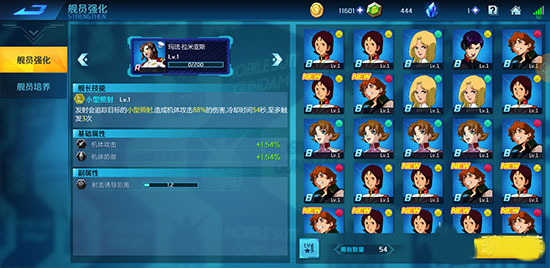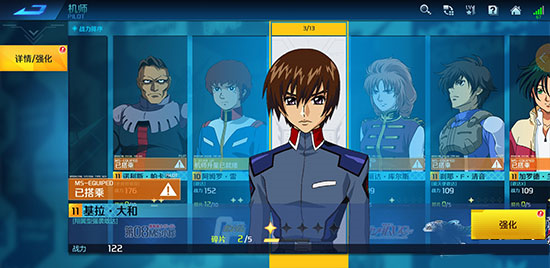 第二个方面就是机师的升级还有升星了,方法和机体强化一样,这方面的升级主要放在机体升级的后边,还有就是最好先给常用机体的专属机师升级还有强化,这样在对战的时候属性加成会很高。