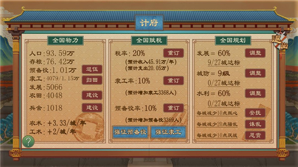 可以通过调整国家税率、隶工率和预备役率决定国家战略资源每年的产出