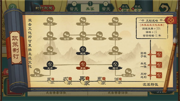 制定政策任用不同文化流派的朝臣能够解锁对应流派的政策,而国家的符合主流文化的政策则会得到增幅。