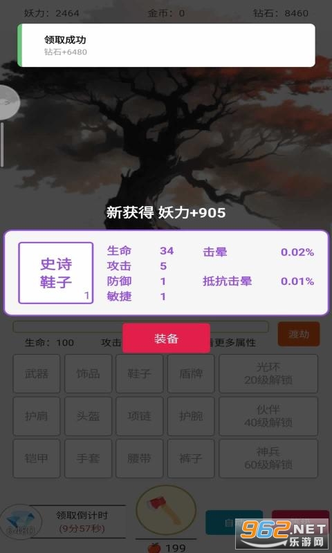 砍树会掉落装备,换上强大的装备可以增加战斗力,砍的更快。