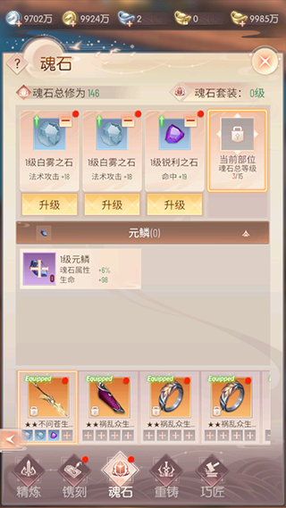 提高镶嵌部位的魂石等级将可以镶嵌更高级的元鳞