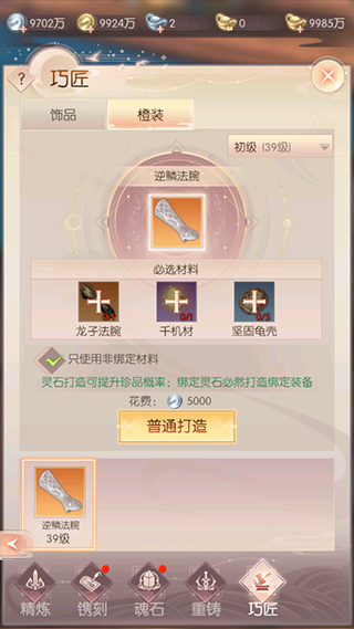 强化打造:额外消耗一定数量的灵石,提高稀有装备的出现几率。