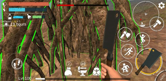 2、开始游戏后我们就需要不断的寻找各种资源让我们在这里世界上活下去,周围看到有用的就可以去获取,比如一些草药、树木等等;