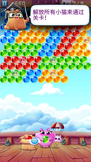 进入游戏后,选择心仪关卡并点击开始按钮,即可开启你的曲奇救援之旅。在每一关中,只需点击屏幕任意位置,即可发射手中气泡。