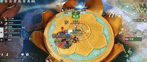 2、每个平台都有水荷,只需要一个人去触碰,全队就都能回满气力,还有回复血量提高跳跃的短暂buff,在这里建议由团队的指挥来决定摸水荷的时机。