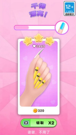 3、完成的美甲作品可塑造专属风格,每件作品都能彰显玩家的审美与创意,增强玩家的创作成就感。