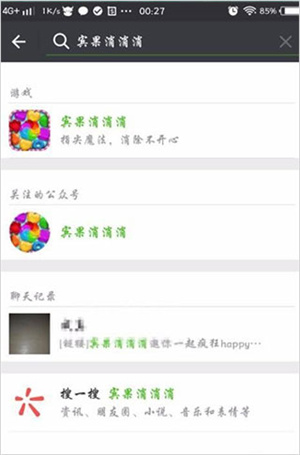 5、另一个办法是,从上面,找到添加朋友的地方,输入宾果消消消这几个字,就会出来几个选项的菜单,不要点游戏,点开公众号。