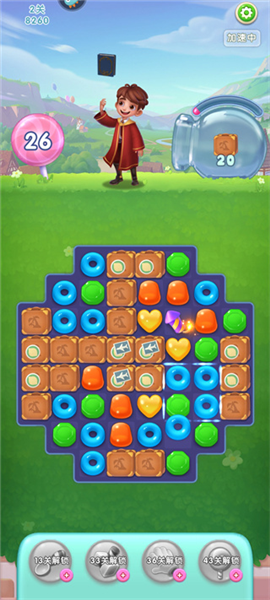 7、在游戏过程中很有可能会合成很多游戏道具,使用游戏道具消除你的得分会更高,得分高起来了三星的几率也就更大;