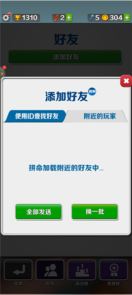 2、可以使用附近的人功能,可以直接搜索附近在玩地铁跑酷的小伙伴,然后直接使用全部发送好友申请,可以非常轻松的添加好友。