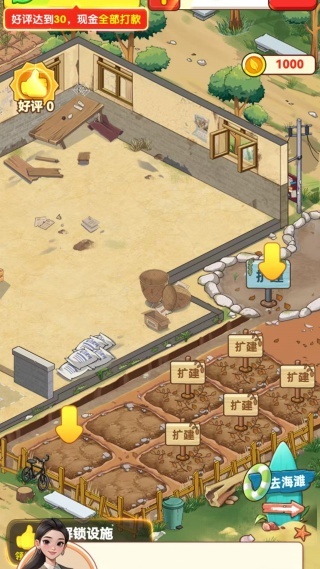 3. 点击扩建可以开垦出更多的土地,让你种植更多的玉米。