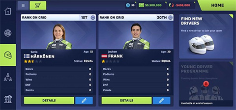 4、招募厉害的车队成员来完成各种赛事比拼,让自己获取更多的资金。