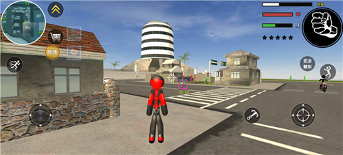 进入游戏后,建议先完成每日签到领取丰厚登录奖励。主界面设有多个操作按钮:移动、跳跃、冲刺、绳索、进车、强力踢等,其中绳索不仅是移动工具,更是制敌利器——可远程拉拽敌人或快速荡过障碍。任务目标通常由绿色火柴人上校”在军事基地附近发布,按指引前往指定地点即可推进剧情。