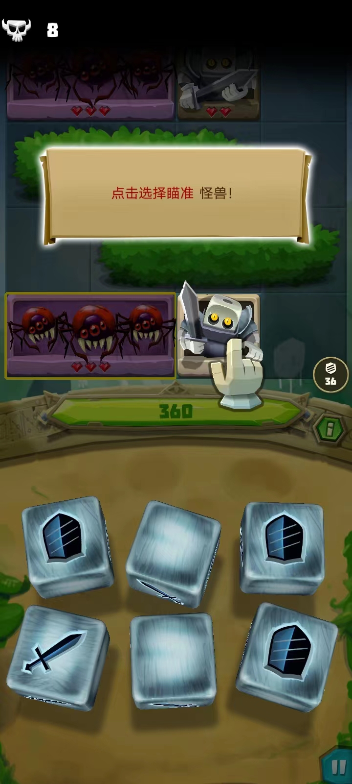 6、首先,玩家需要选择瞄准怪兽;接着还是转动骰子进行攻击;