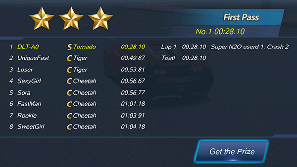 冲过终点线后,系统将实时展示所有参赛玩家的最终排名与成绩。