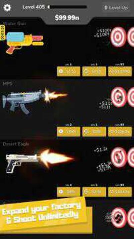 1、非常经典的一种放置游戏,玩家能够控制枪支进行射击,击碎靶子从而获得你的第一桶金。