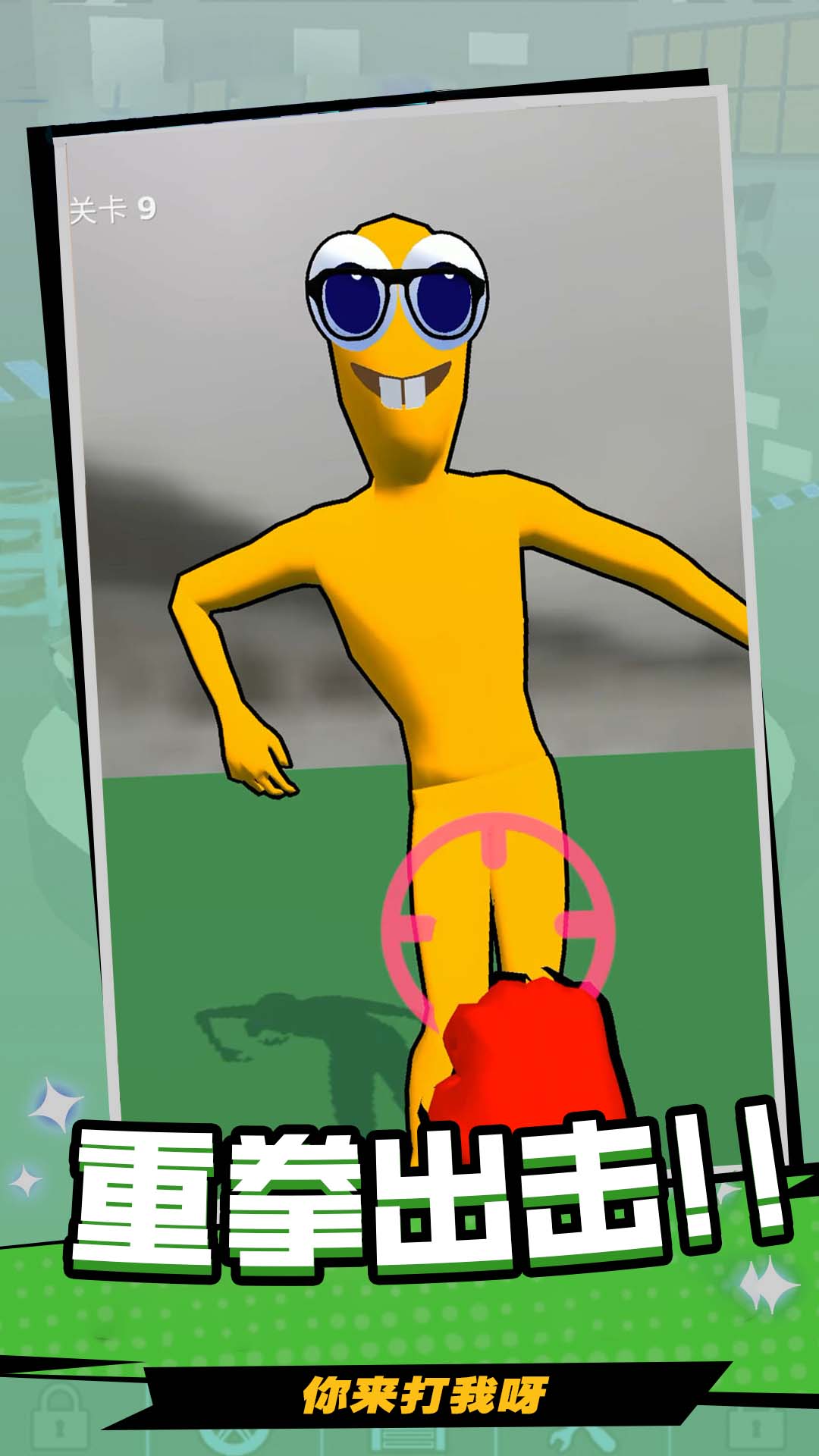 1、点击屏幕就能瞄准,松手便打出一发重拳,火柴人腾空飞起将敌人连墙砸碎,爽感直接拉满。