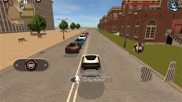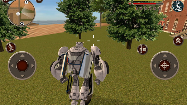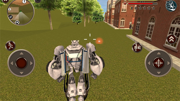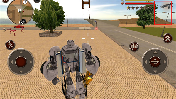 进入游戏后,你的首要目标是保卫城市安全。左侧虚拟摇杆控制移动与奔跑,右侧按钮负责攻击、跳跃及关键的变形”功能。当切换为汽车形态时,右侧操作区会自动变为油门与刹车,驾驶体验直观自然。