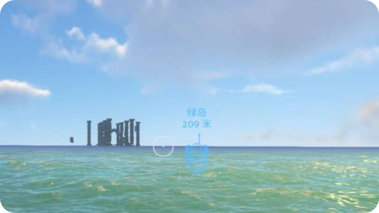 2. 距离绿岛约200米时,云层自动消失。