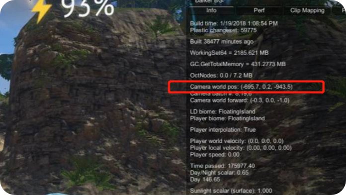 3. 发现绿岛底部后,按F1查看坐标,导航至(-695.7, 0.2, -943.5)即可找到登岛入口。