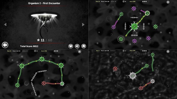 你可以通过捕捉敌人的细胞来治愈这个有机体。为此,在绿色抗体和红细胞之间划一条线。这将发射DNA触须,从敌方细胞核心吸取能量,最终超越它们。注意你的能量供应,通过切断触角来提高你的攻击力。占领所有敌人的小队以保护一个区域。治愈所有区域,生命形式将生存...