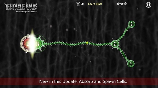 触手大战是一款策略塔防类手游,游戏设定在微观世界,神经细胞正在面临空前的威胁,玩家的任务是帮助神经细胞抵御来自其他细胞的吞噬。玩家需要灵活地占据其他细胞作为基地,并培育自己的突触进行反击。游戏的主要目标是入侵占领红细胞,后期关卡中会有不同大小及颜色的细胞,玩家可以占领这些细胞,借助更多的数量来达成最终的游戏目标。