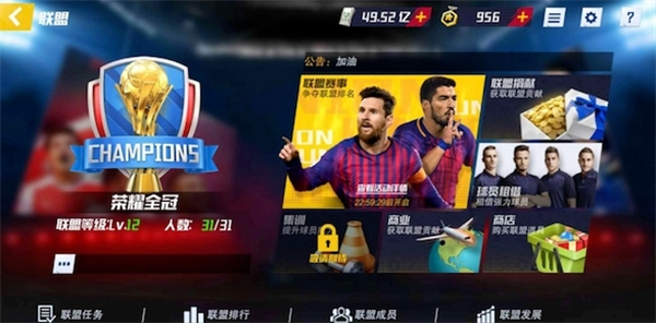一人拾柴火不旺,众人拾柴火焰高。一个强大的联盟带来的各种方便也是快速成长的不二之选,每天捐献最容易获得的欧元可以得到不菲的贡献(钻石效果更佳),贡献可以租借盟友的球员、购买联盟商店的各种道具。不排除有像我们联盟一样包含最优秀的隐藏福利(安排你排位毕业)。 在社交方面除了可以聊天外,好友里还可以领取每天上线200点的体能。