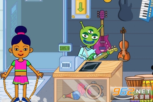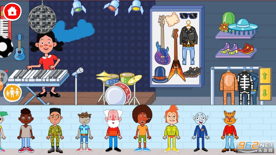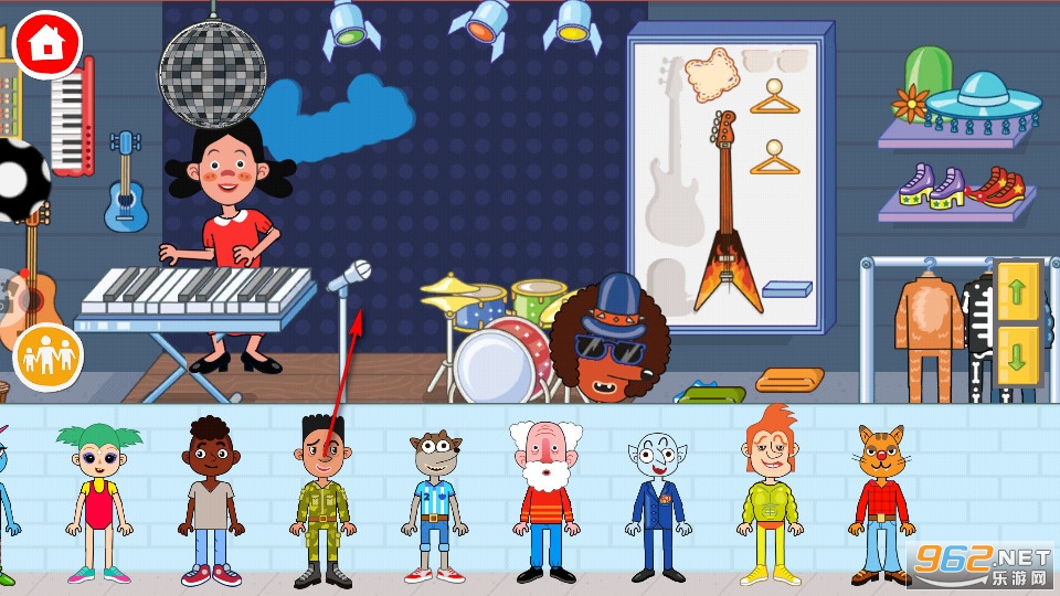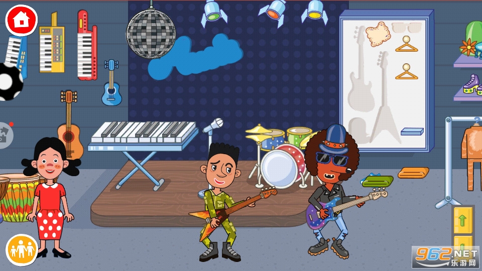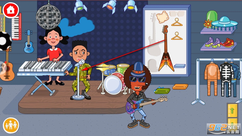 自由搭配的场景物品:我们可以让场景中所有的东西都可互动,无论是挂上的衣服还是掉在地上的衣服,无论是电吉他和钢琴还是架子鼓话筒,都能够与场景中的人物互动。