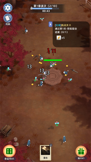 进入游戏后,首先创建你的专属角色。战斗开始后角色将自动攻击,你只需通过屏幕中央摇杆控制走位,规避危险或集中火力。点击幸运币可随机获取技能,也可通过抽卡解锁强力新招。优先完成主线任务获取关键资源,同时别忘了每日挑战——它们是你快速成长的重要助力。