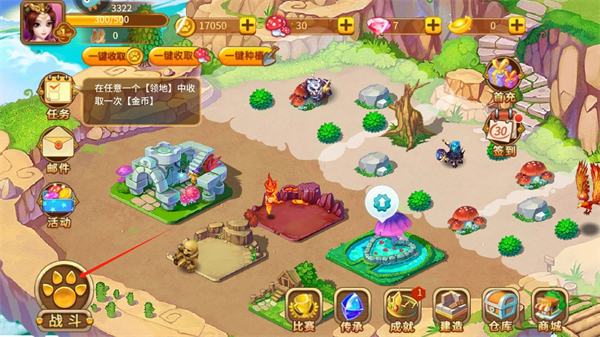 进入游戏后,首先为你的角色命名,随后开始建设专属领地——这是神兽诞生与成长的基础。完成基础建设后,即可购买第一只宠物,并跟随清晰的新手指引逐步搭建完整的养成体系。