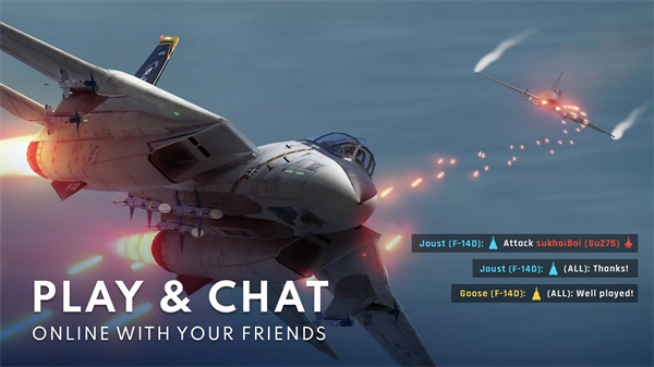 好友系统正式开放,邀请好友合作对抗进行在线游戏,包括: 4V4团队生存竞赛”、4V4夺旗战”及4V4基地保卫战”,在激烈的空中战斗中,根据不同战术策略下达战斗指令,全员集火攻击最优化火力输出,摧毁敌方基地,夺取制空霸权!惊险刺激的8人生存战”、8人自由混战”考验瞬息万变的战场掌控能力,对抗各自为战的敌方战机的强势冲击,在战斗中成长,掌握过人的飞行本领!还有自由漫飞”休闲模式,支持战机编队飞行表演拉烟,执行特技飞行动作,展示酷炫的组队风采。
