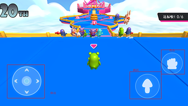 操作直观易懂:左侧为虚拟【移动键】,右侧分别设有【跳跃键】和【攻击键】,助你灵活闪避障碍、跃过陷阱,甚至用拳头友好”地干扰对手!