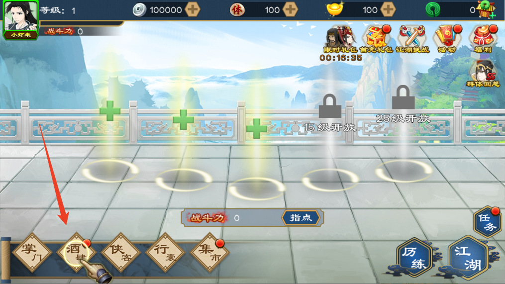 2、跟随新手引导,前往酒馆招募你的第一位侠客。